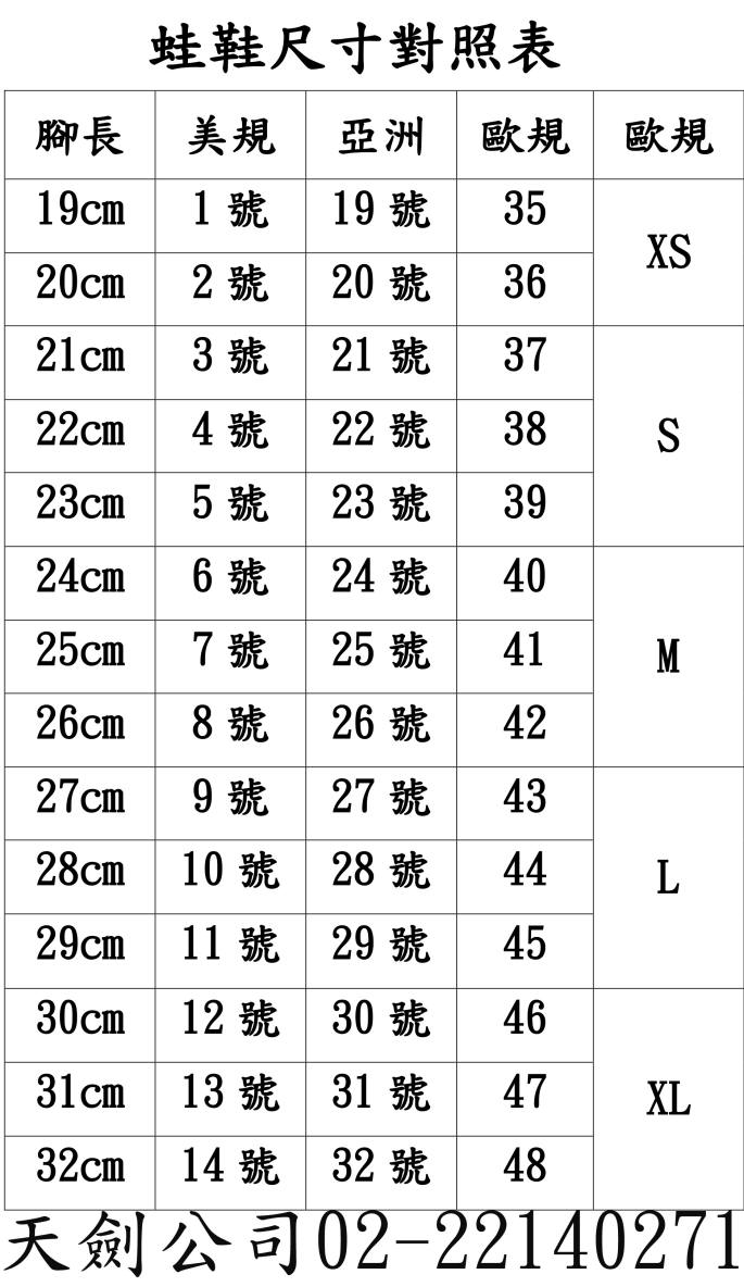 限有能力自製蛙板或外購蛙板者歐 規 美 規 亞洲規格範圍 40/42 (M) 25.0cm∼26.5cm 42/44 (L) 26.5cm∼28.0cm 44/46 (XL) 28.0cm∼29.5cm 46/48 (XXL) 29.5cm∼31.0cm